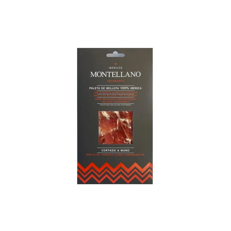 La spalla di maiale iberico 100% di ghianda Montellano deriva da un’attenta selezione di maiali iberici allevati allo stato brado nelle dehesas della provincia di Salamanca. Maturata per più di 24 mesi, la spalla iberica 100% di ghianda Montellano presenta un colore omogeneo e vivo con venature bianco-perlacee che si traducono in un sapore accentuato della ghianda, dolce, deciso ed intenso che rievoca il paesaggio dei pascoli in cui vivono gli animali.